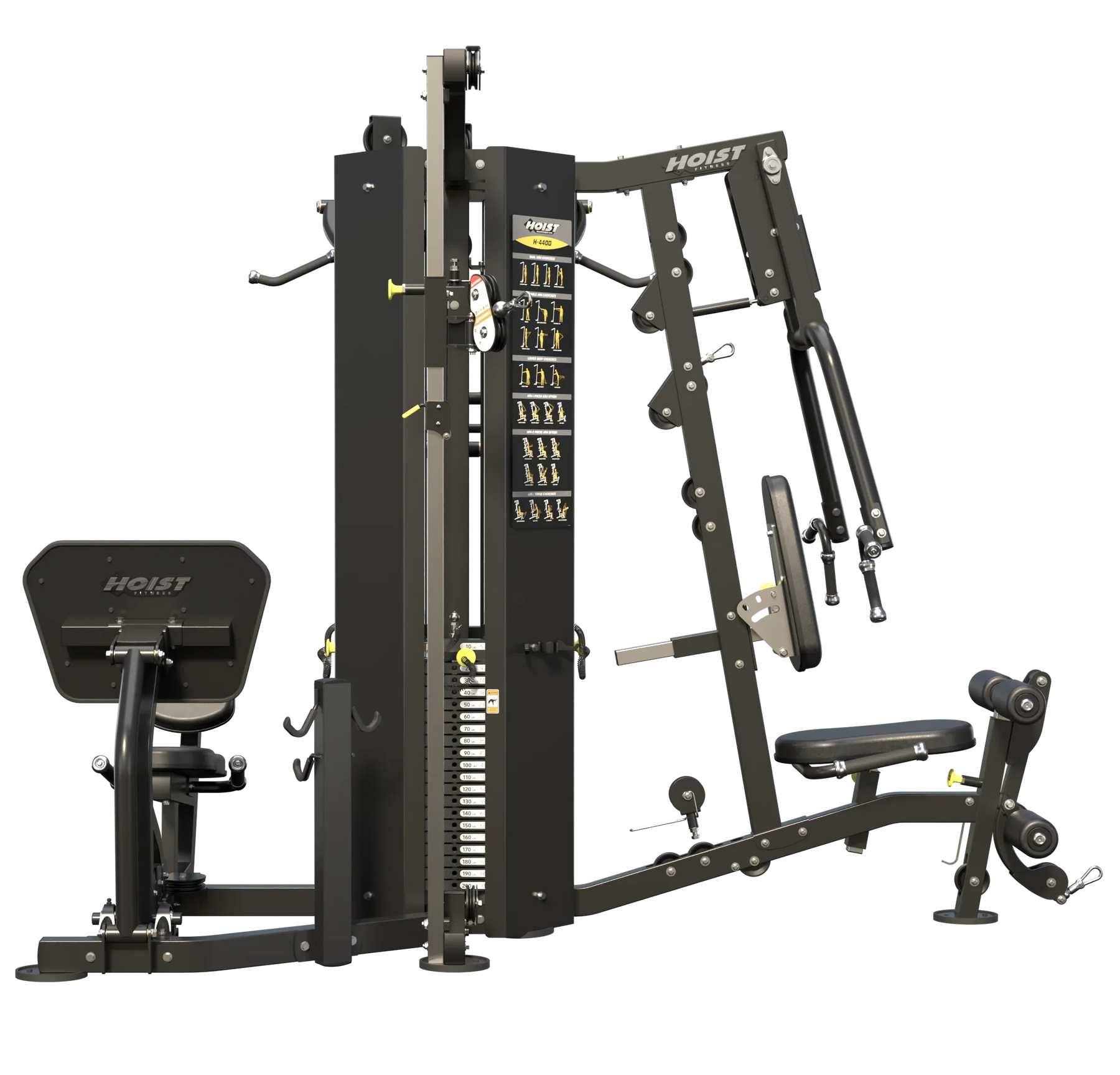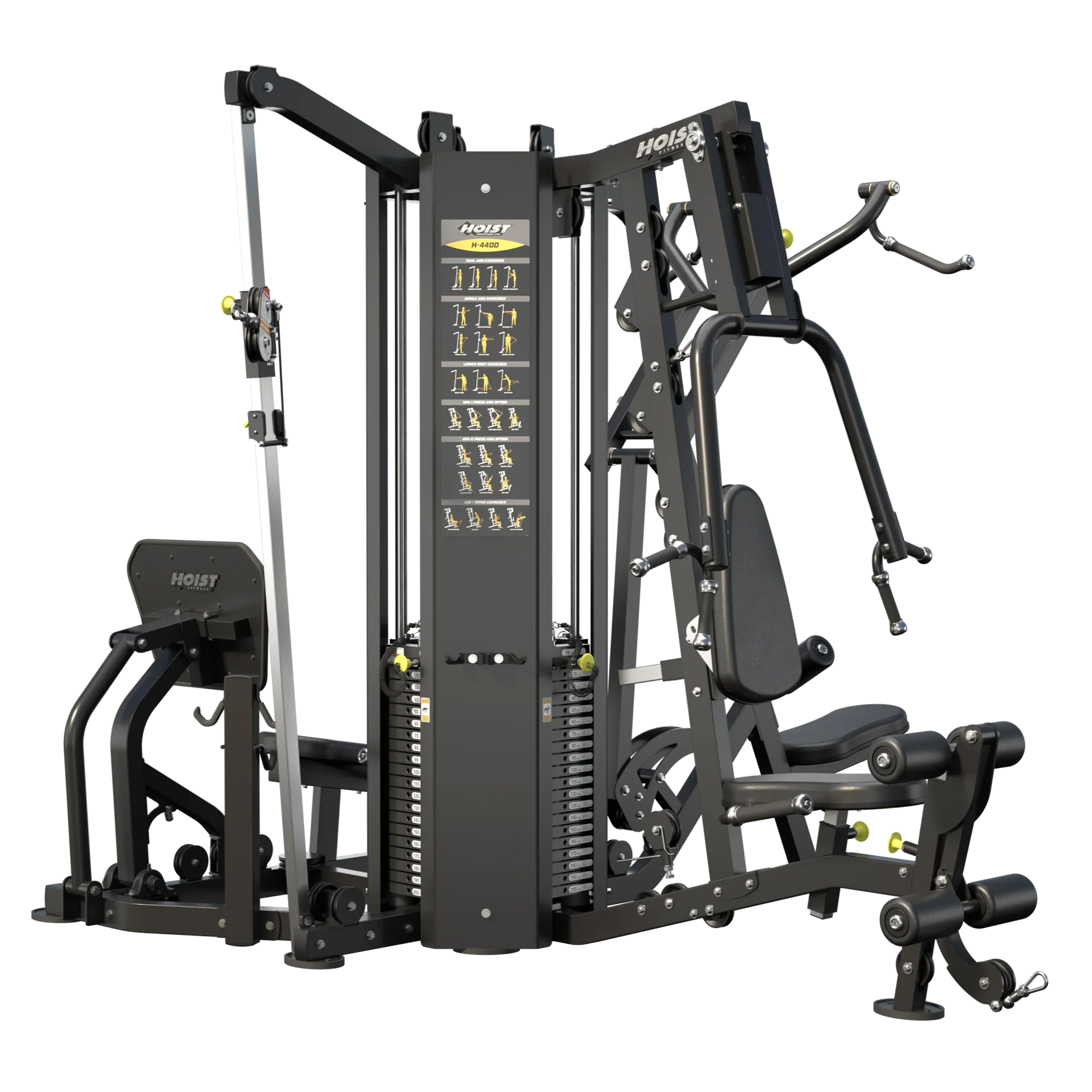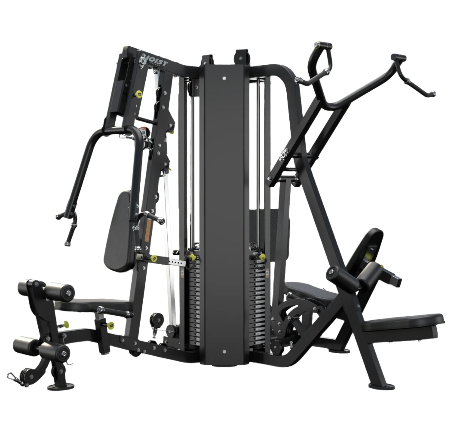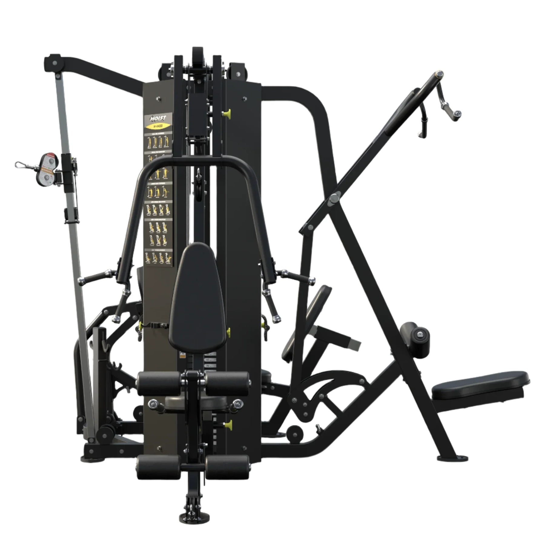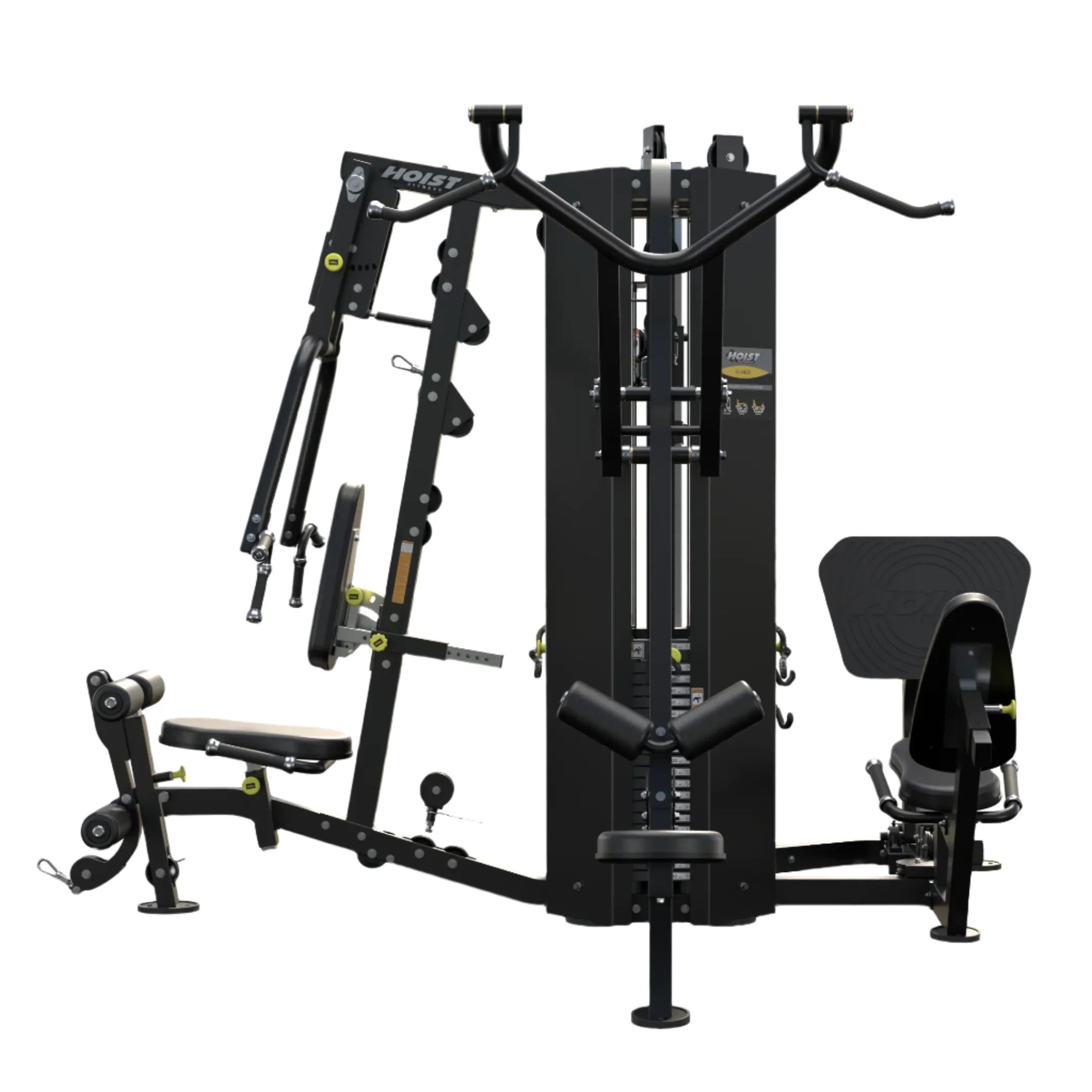 The HOIST Fitness  4 Stack Multi-Gym brings 40 years of innovation with its recent redesign by our engineering team. Designed with the same smooth, natural, quiet motions that have become the HOIST® trademark, the gym is the most up-to-date premium 4-station gym for light commercial settings.